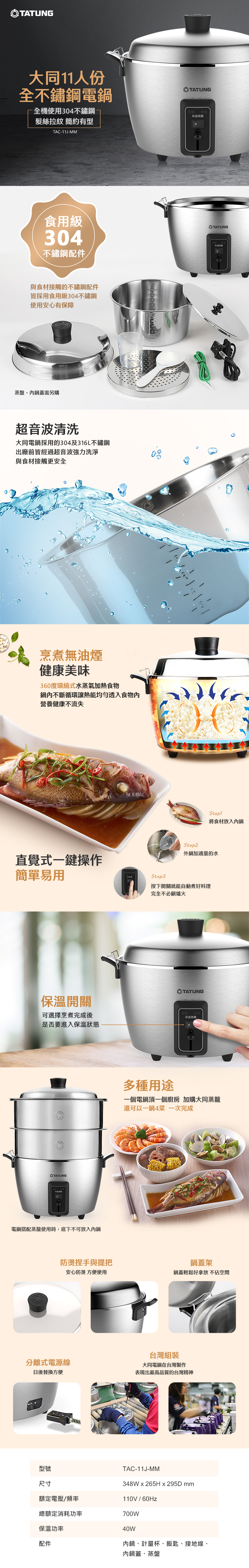 TATUNG 大同 TAC-11J-MM 電鍋11人份 304全不鏽鋼配件 保溫切換開關