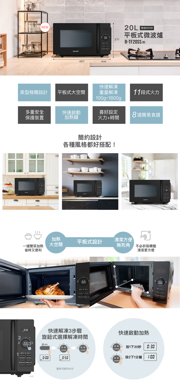 SHARP 夏普 R-TF20SS 微波爐 20L 平板式 微電腦