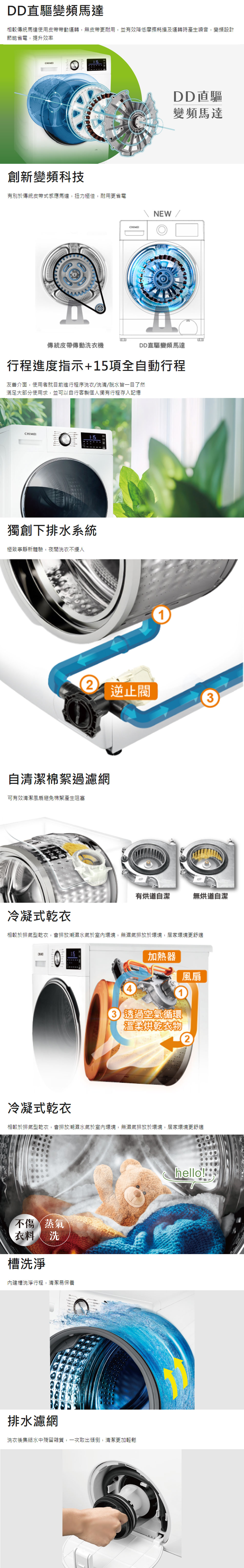 奇美 WS-V139WD 滾筒洗衣機 洗衣13乾衣9kg 洗脫烘 變頻洗衣機 DD直驅 變頻馬達