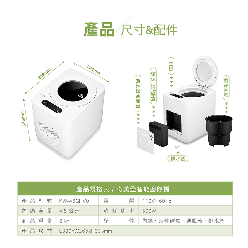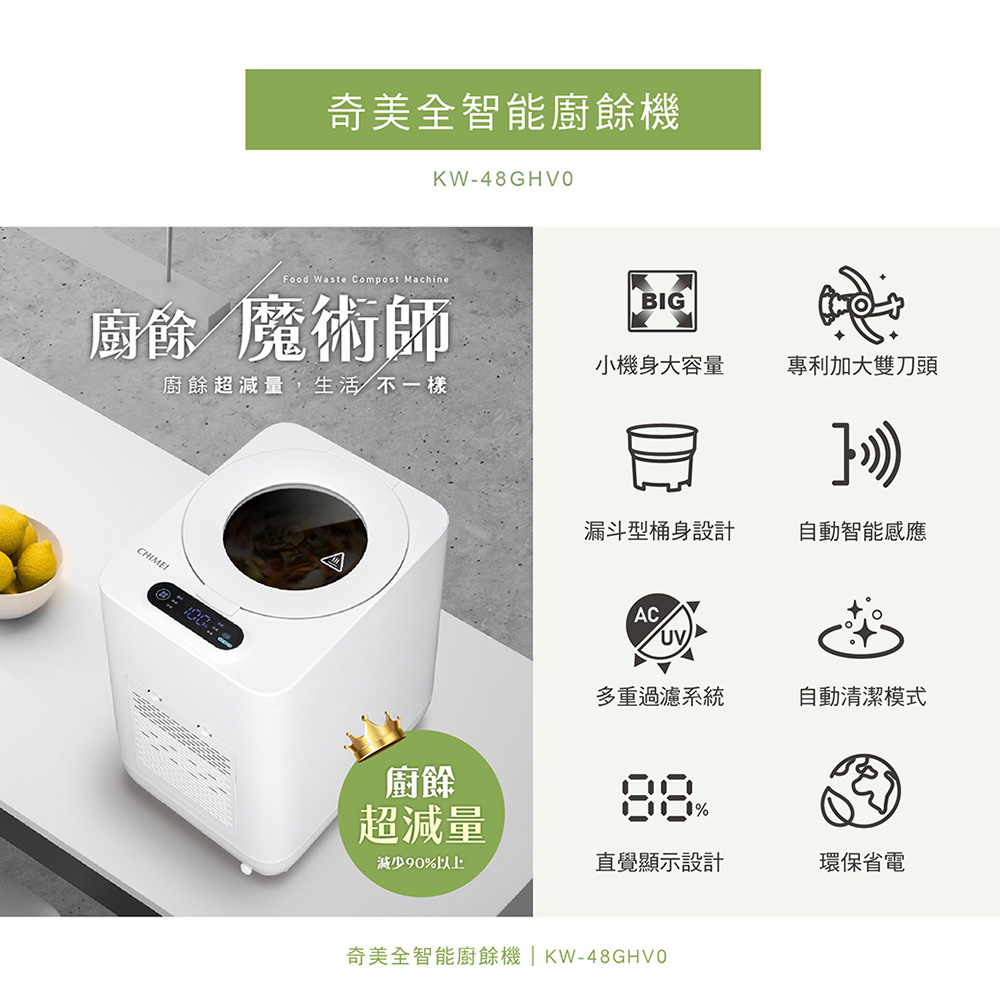 CHIMEI 奇美 KW-48GHV0 全智能4.8L多重過濾自清潔廚餘機
