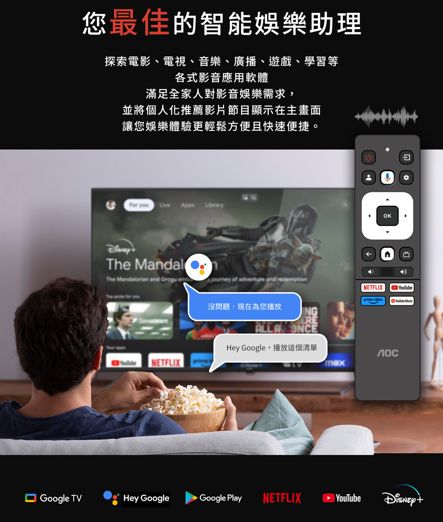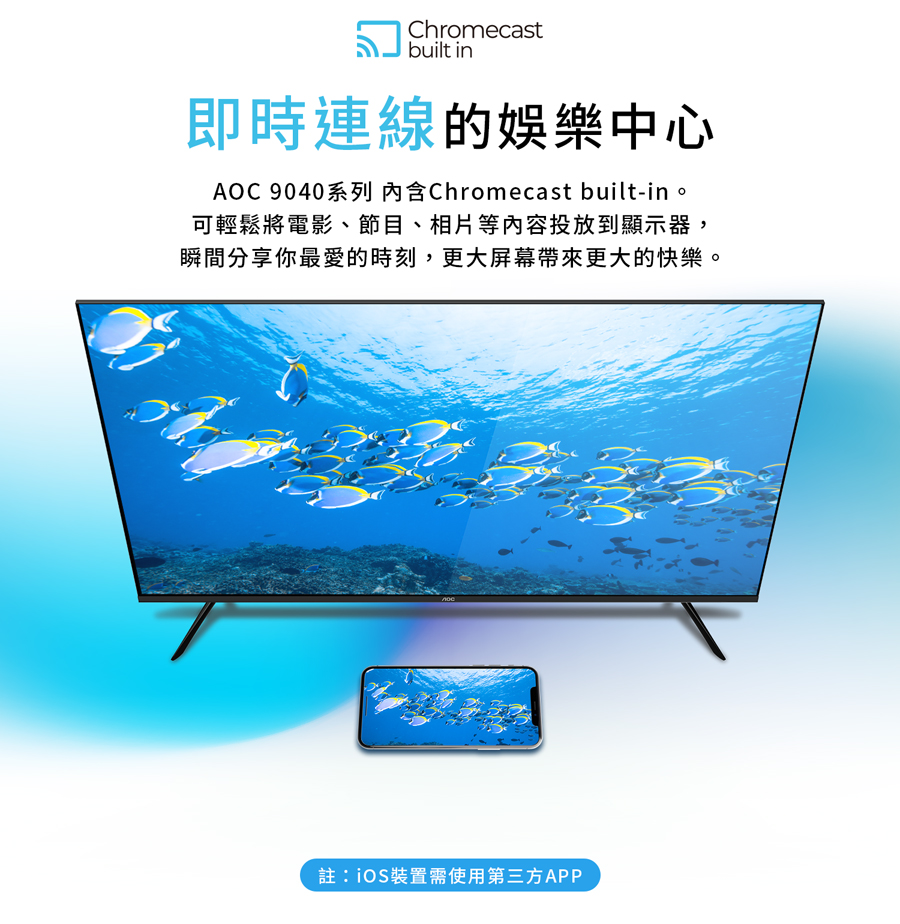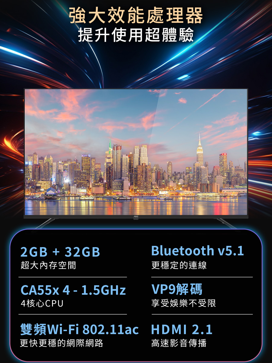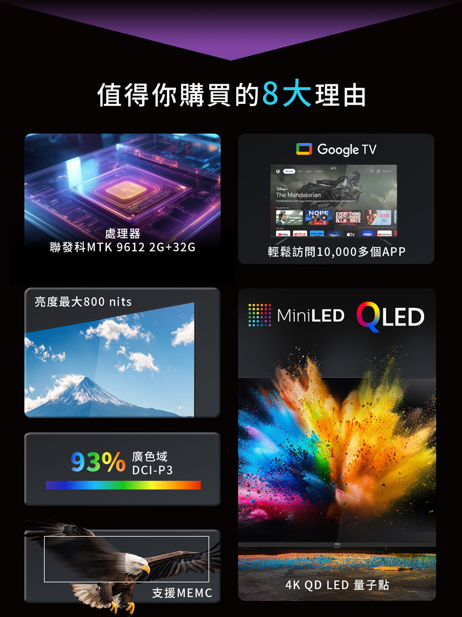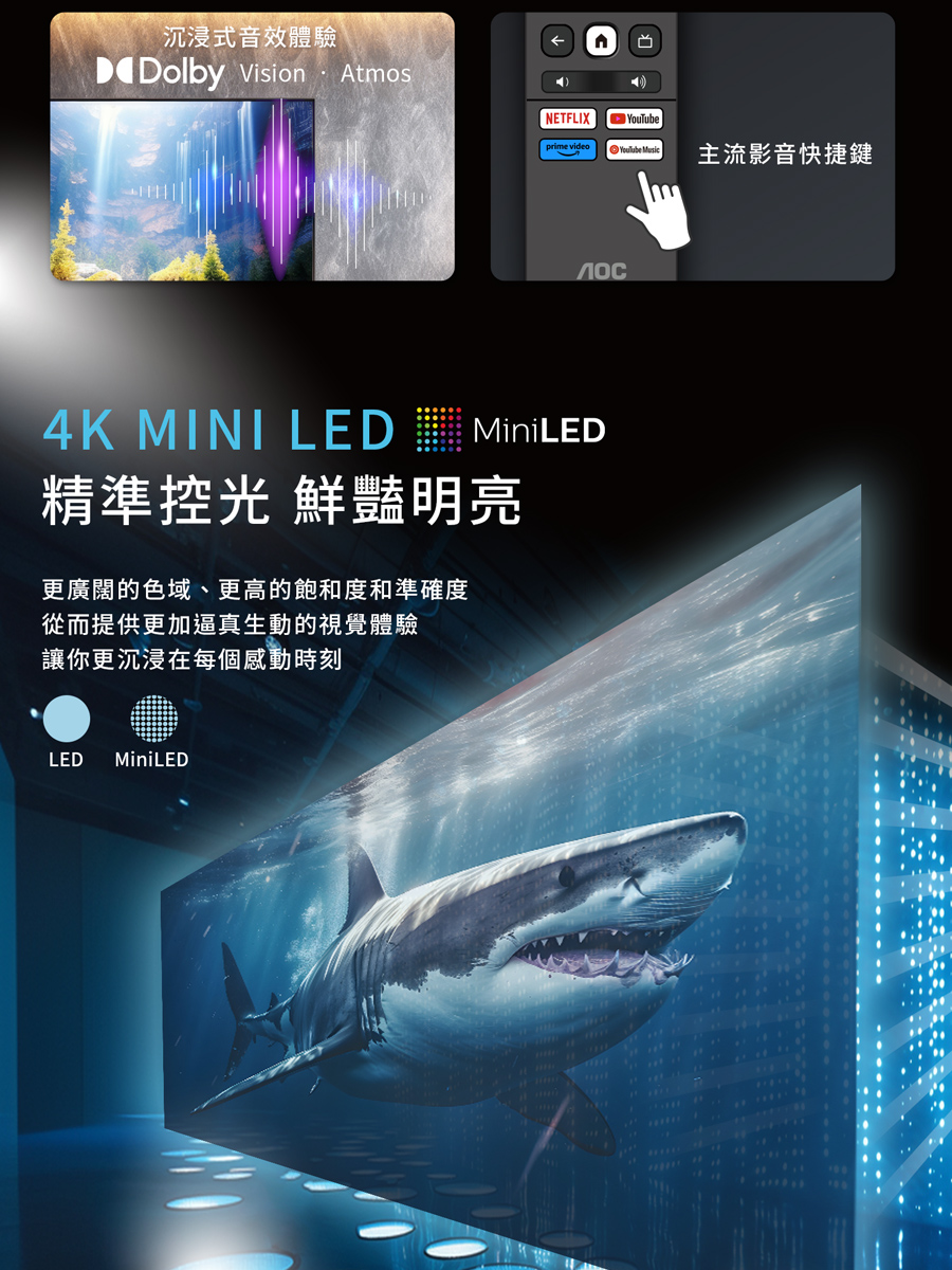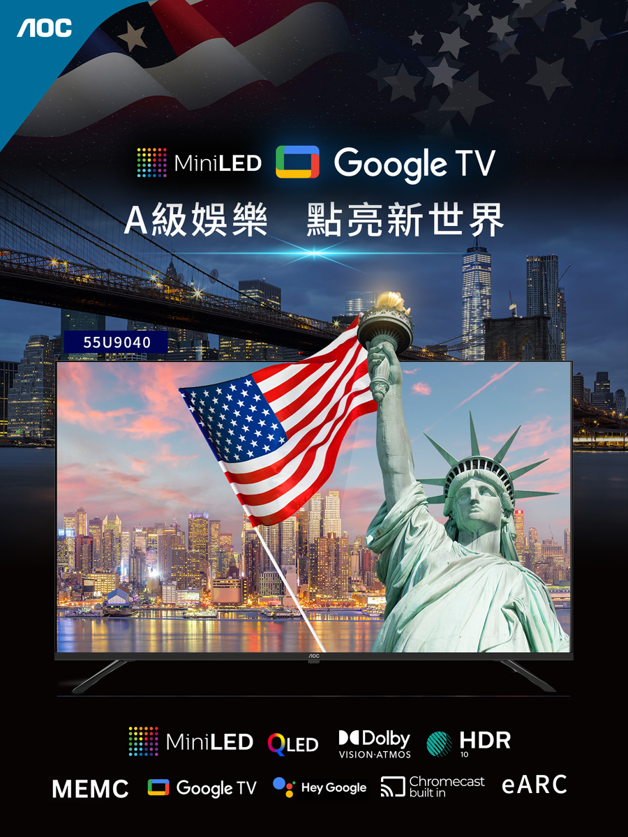AOC 55型 55U9040 4K Mini LED QLED Google TV 量子點顯示器 送基本安裝