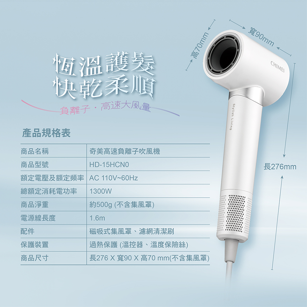 CHIMEI 奇美HD-15HCN0 高速負離子智能恆溫吹風機