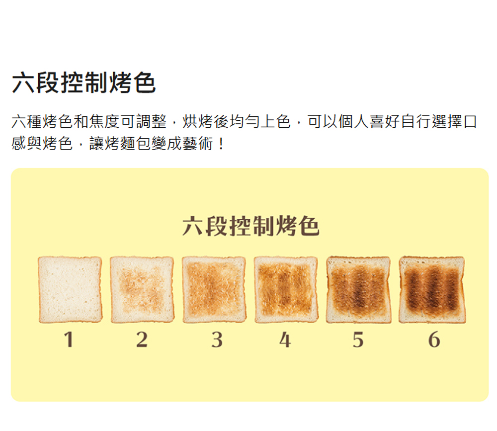 • 六段控制烤色