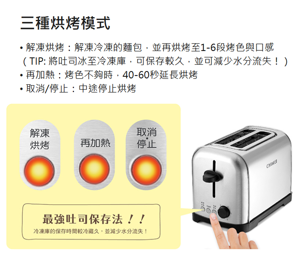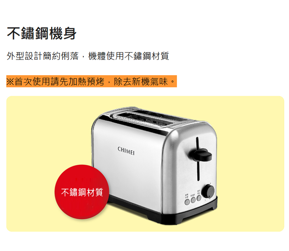 CHIMEI 奇美 EV-02S0AK 不鏽鋼機身6段烤吐司機