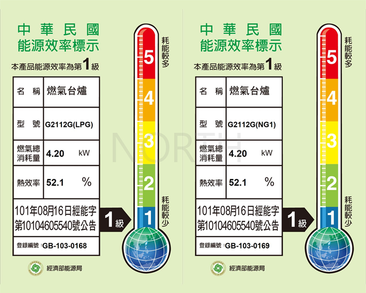 熱效率 | 液化瓦斯 | 52.0% (能源效率第 1 級) |