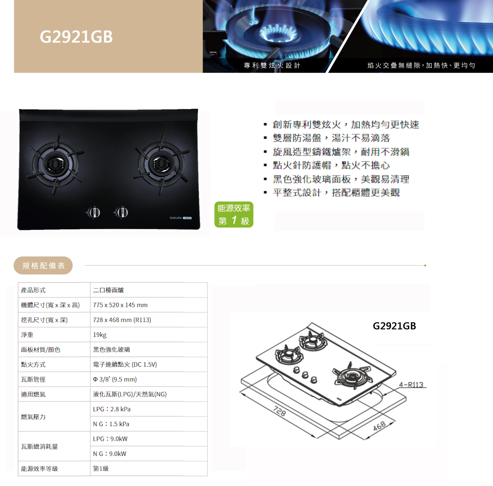 適用燃氣 | 液化瓦斯(LPG) / 天然氣(NG) |