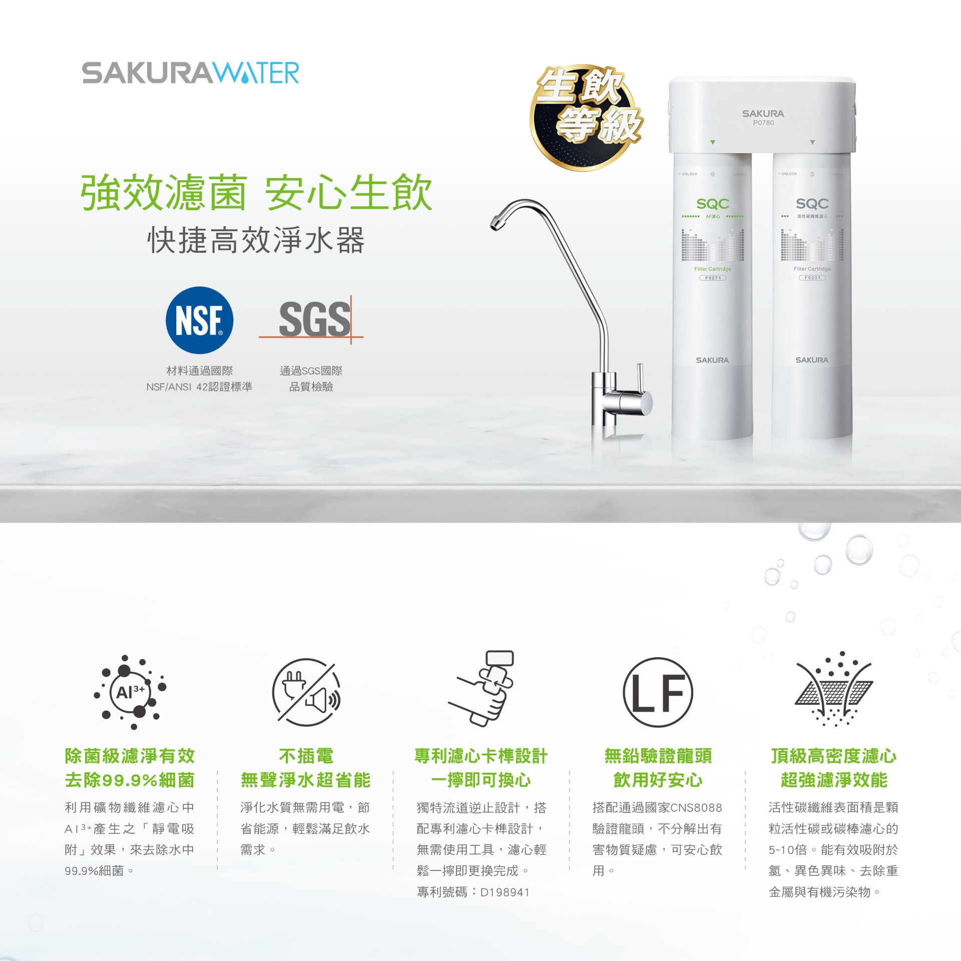 櫻花SAKURA 快捷高效淨水器(雙管除菌型) P0780