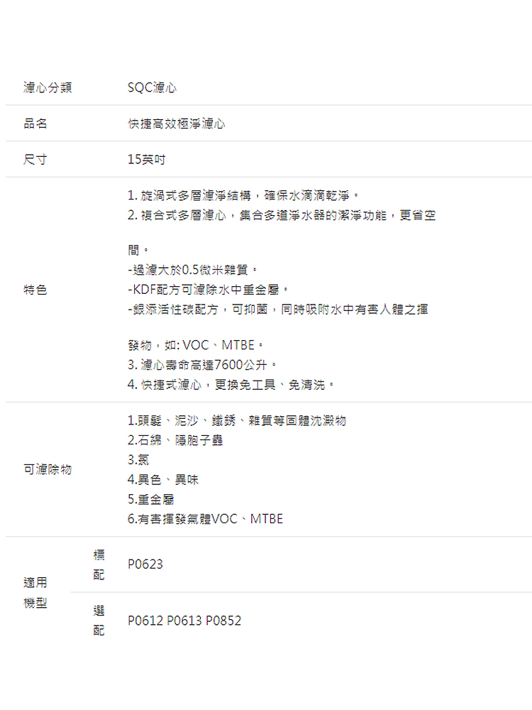 濾心分類 | SQC濾心 | |