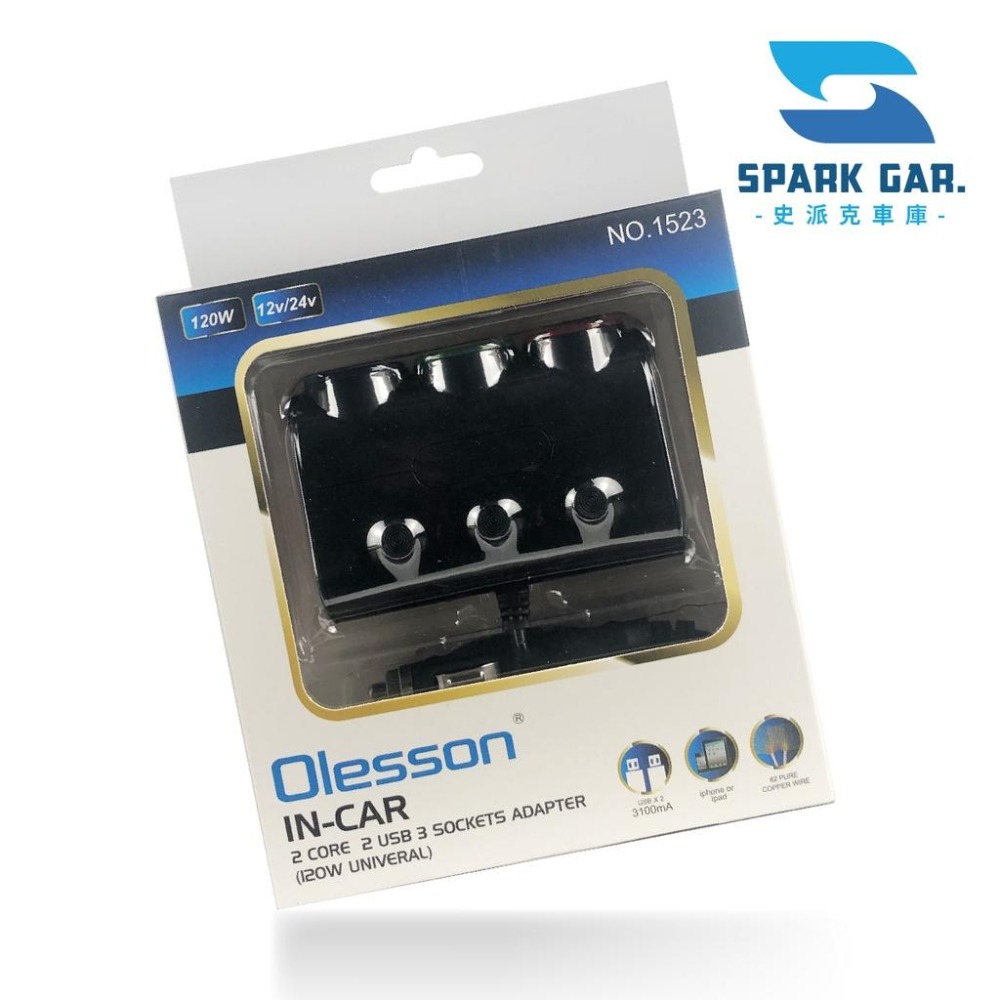 1. 一對三車充+雙USB端口,使用便利,適用於手機、iPad、GPS等。