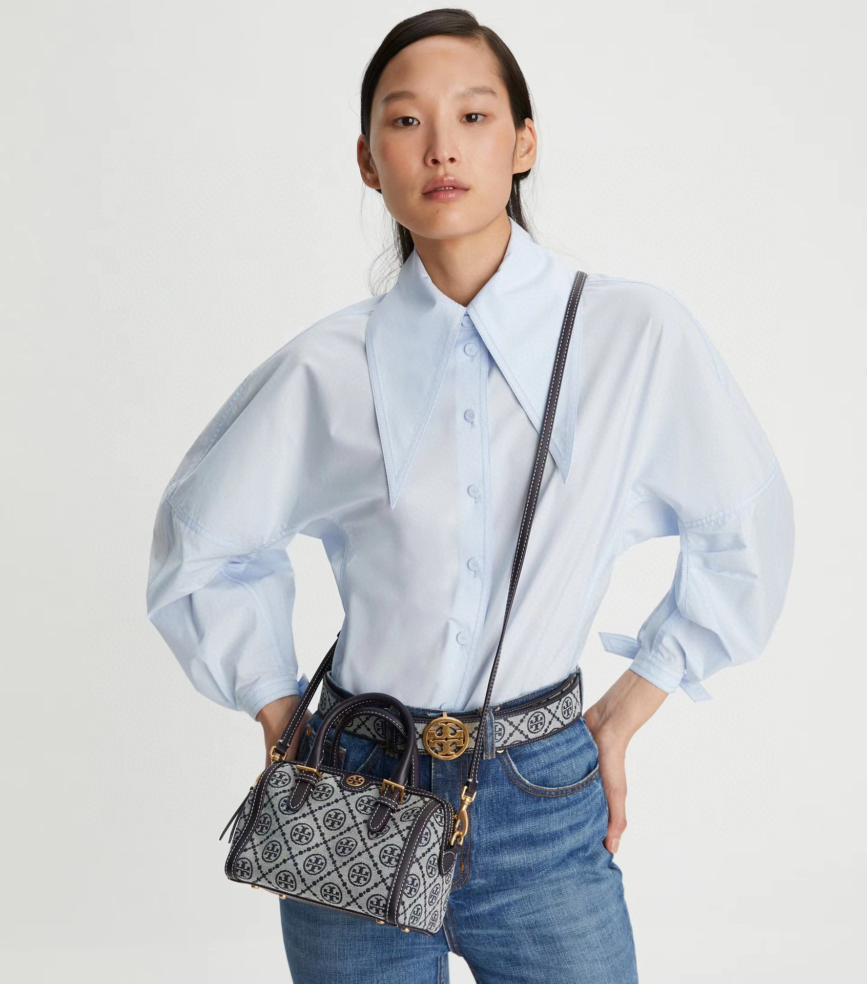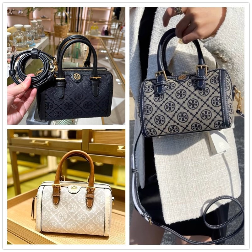 TB波士頓包枕頭包Monogram印花刺繡tory burch女包酒桶包