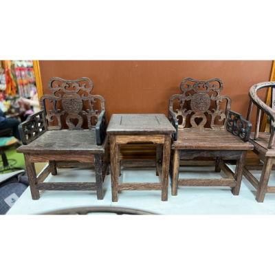 雞翅木製 兩椅一几 官帽椅 ↓↓↓↓↓↓↓↓↓ ( 椅面寬8.5公分,椅面深6.5公分,椅高6公分,椅總高16公分,桌面寬6*6.2公分,桌高8.5公分 ) 圈椅 ↓↓↓↓↓↓↓↓↓ ( 椅面寬8.3公分,椅面深7公分,椅高6公分,椅總高13公分,桌面寬6*6公分,桌高8.5公分 ) 福字椅 ↓↓↓↓↓↓↓↓↓ ( 椅面寬8.3公分,椅面深6.2公分,椅高6.5公分,椅總高12公分,桌面寬6.4*6.2公分,桌高8.5公分 )