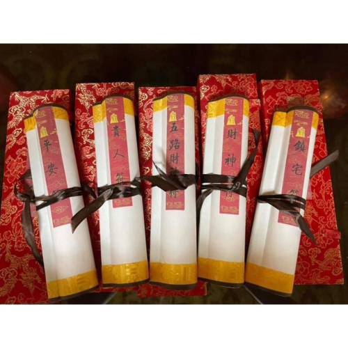 現貨 五路財神符、貴人符、平安符、鎮宅符 此符由龍虎山天師府上清齋 所繪皆已在龍虎山嗣漢天師府 點水加持完成 卷轴符尺寸。45公分X19.5公分