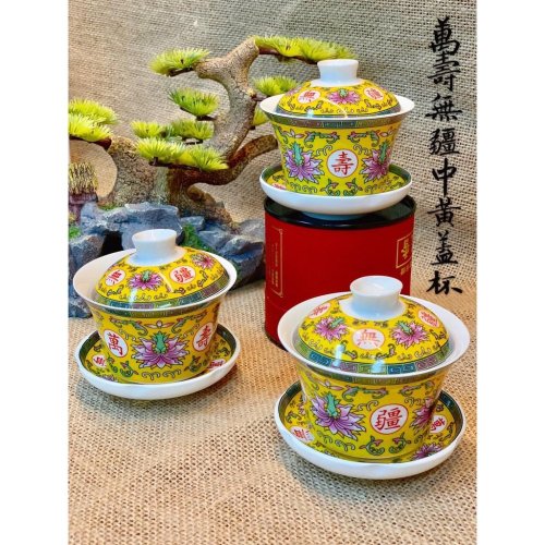 萬壽無疆大、中款蓋杯 紅黃兩色可選 一組杯子 有三個 紅色 中 黃色 中 紅色 大 黃色 大