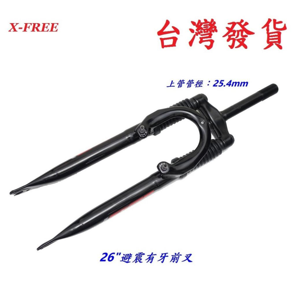 X-FREE自行車26"避震有牙前叉 管徑25.4mm 上管長153mm 180mm 避震登山車1吋鎖牙腳踏車前叉