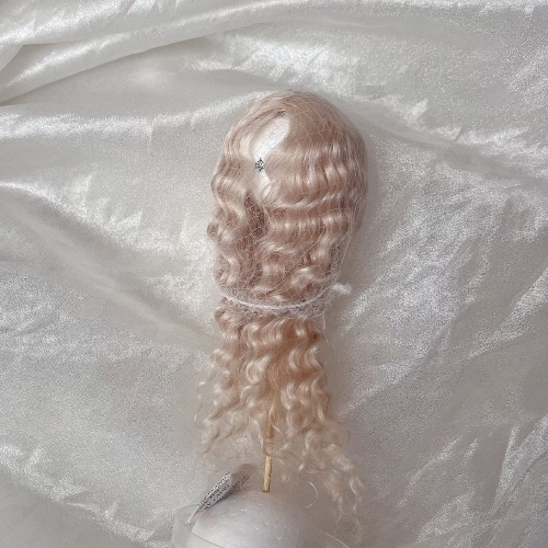 bjd 六分馬海毛假髮 淺金小卷 長波浪