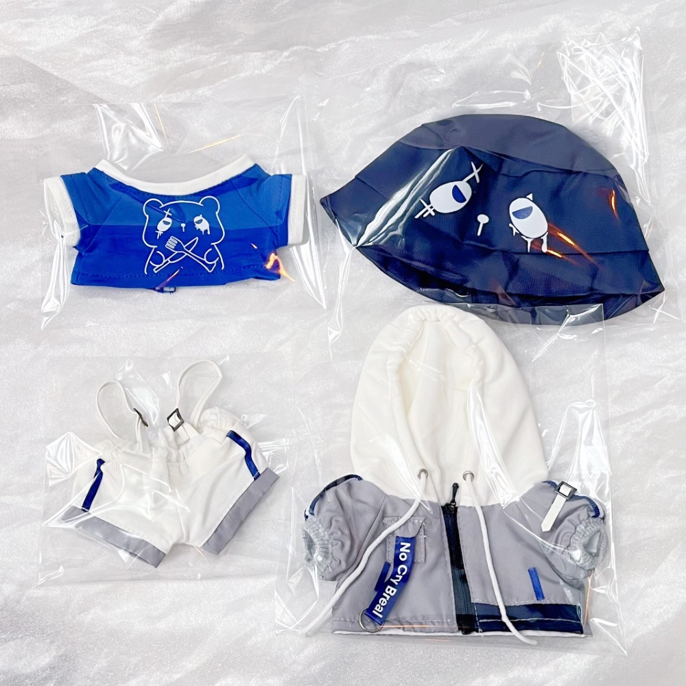 台現🧵20cm棉花娃娃衣《極地鎏感》四件組,含漁夫帽、背帶褲、藍T、外套