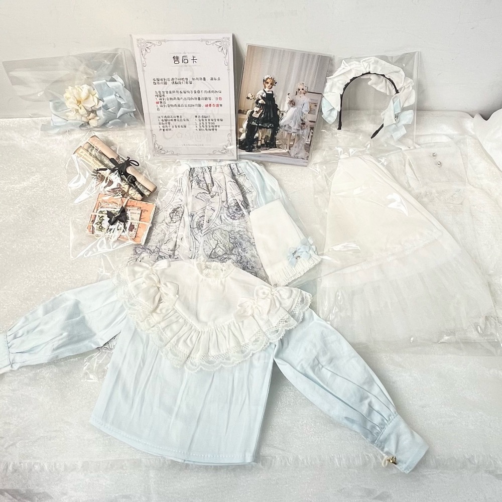 內含:大全套如圖,長袖襯衫、襯裙、外裙、襪子、頭飾、紙捲、加購的白紗圍裙