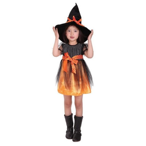 現貨台灣-萬聖節服飾,萬聖節裝扮,變裝派對,巫婆服裝.兒童變裝服-俏麗網紗巫婆裝(橘)