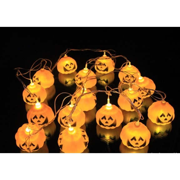 現貨台灣-萬聖節佈置商品/餐廳佈置/發光南瓜商品/發光南瓜燈串-LED20燈南瓜燈串(電池)