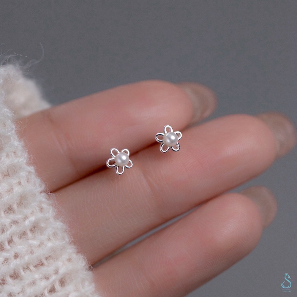 SUMMER 銀飾💫[925純銀]珍珠花朵鎖珠式耳環 純銀耳環