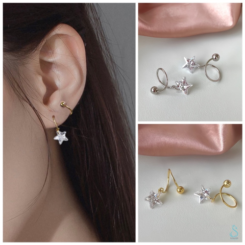 ▪️轉下鎖珠,耳針可由「前往後穿」 或 「後往前穿」任意變換造型喔~