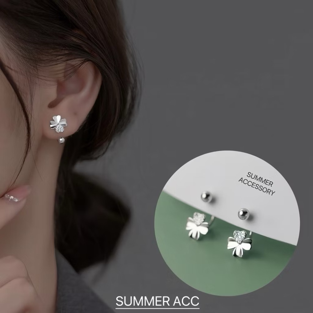 SUMMER 銀飾💫[S925銀]幸運草轉珠耳環 鎖珠式耳環 C型耳環 純銀耳環 純銀飾品