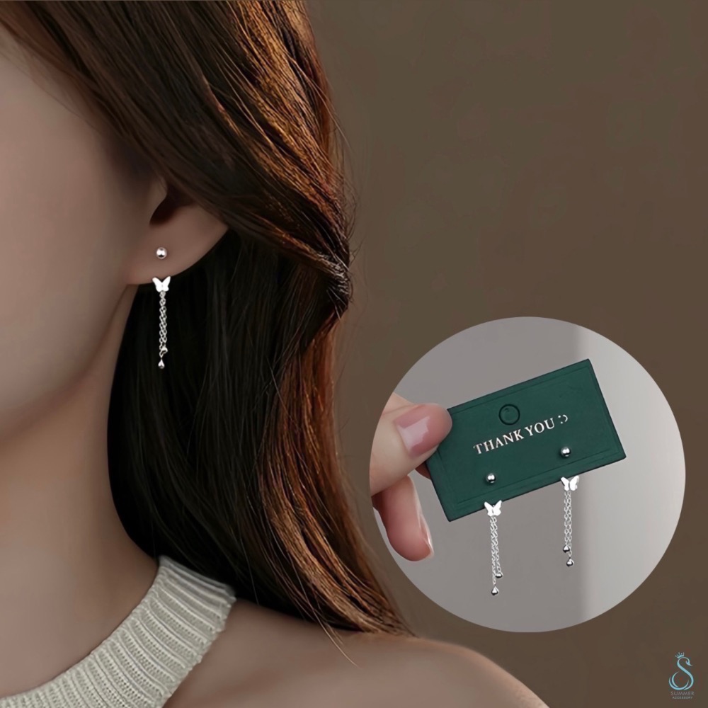 SUMMER 銀飾💫[999足銀]蝴蝶墜鏈轉珠耳環 鎖珠式耳環 純銀耳環 純銀飾品