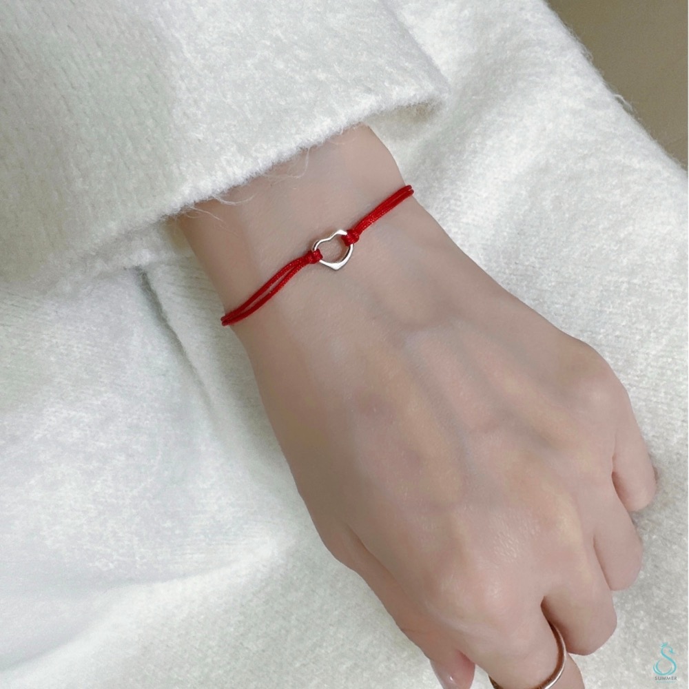 SUMMER 銀飾💫[925純銀]本命年紅繩手鍊 簡約心形手作紅繩手鏈 幸運紅繩 純銀手鏈