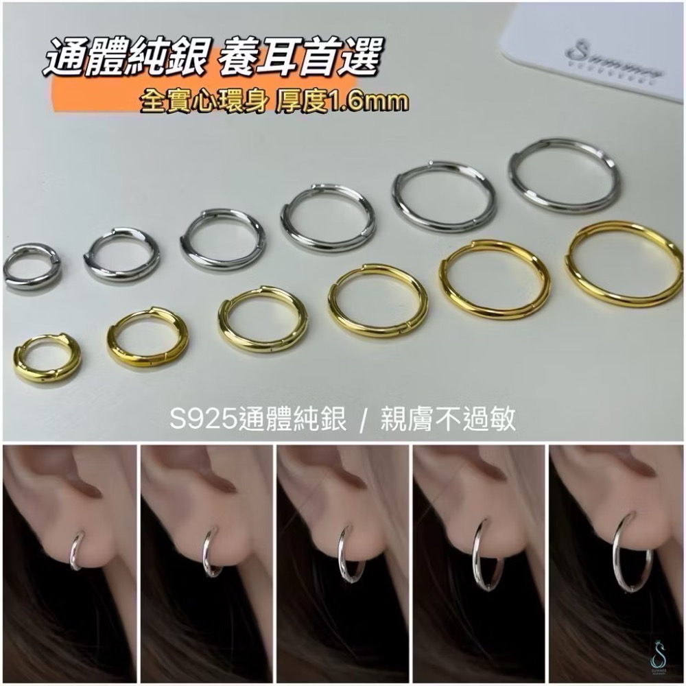 SUMMER 銀飾💫[925純銀]全純銀不過敏 洗澡睡覺不用摘 內圈實心完美大小6種尺寸基礎簡約耳扣耳環 純銀耳環