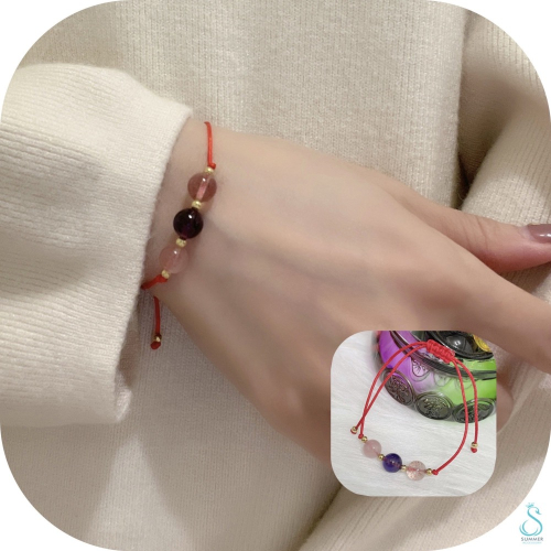 SUMMER 銀飾💫[925純銀]天然晶石 草莓晶 紫水晶 粉晶三色晶石手作手繩
