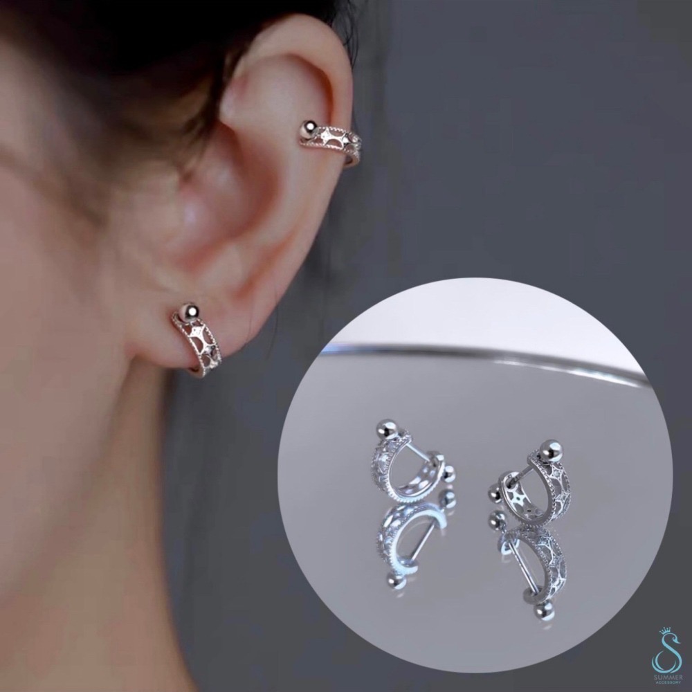 SUMMER 銀飾💫[925純銀]鏤空星芒轉珠耳環 鎖珠式耳環 純銀耳環