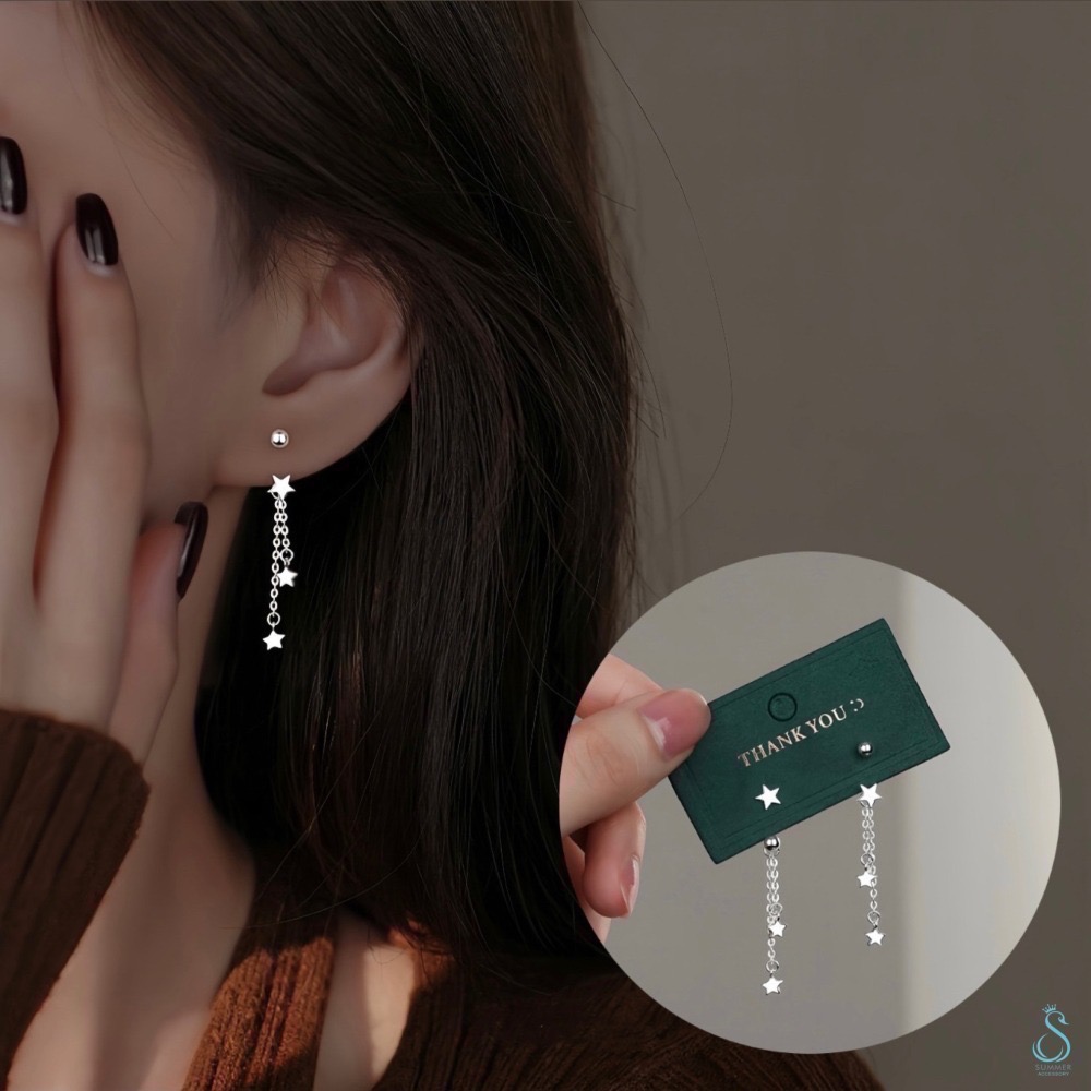 SUMMER 銀飾💫[999足銀]星星流蘇轉珠耳環 鎖珠式耳環 C型耳環 純銀耳環