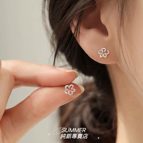 SUMMER 銀飾💫[999足銀]<綣綣花語>鎖珠式耳環 洗澡睡覺不用摘 立體造型 純銀耳環 迷你耳環 純銀飾品