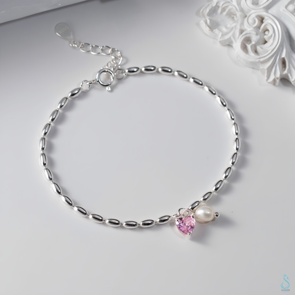 SUMMER韓 銀飾💫[925純銀]純愛心語 純銀手鏈 天然珍珠 愛心手鏈 純銀飾品