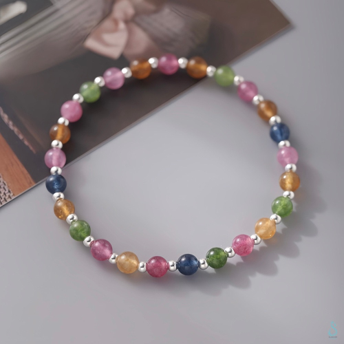SUMMER 銀飾💫[925純銀]優化天然碧璽銀珠手串 晶石手鍊 純銀手鍊 晶石能量手鏈