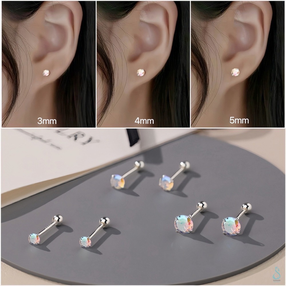 SUMMER 銀飾💫 [S999足銀/S925純銀 ]閃亮煥采圓鑽 鎖珠式耳環 洗澡睡覺不用摘 養耳抗過敏 純銀耳環