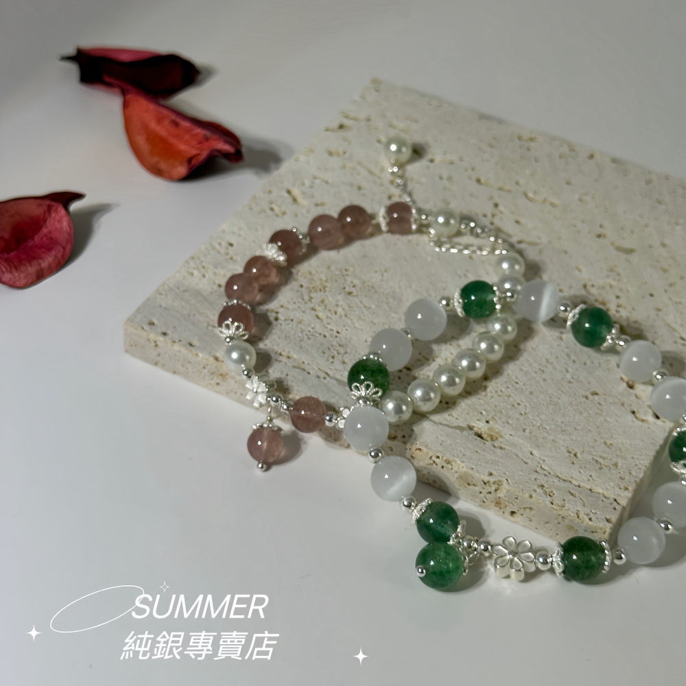 🔹晶石:天然綠草莓晶 + 人造貓眼石 ( 7.5mm~ 8mm )
