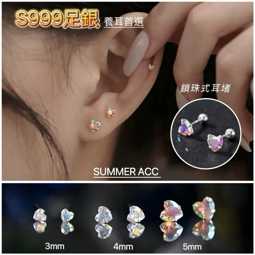 SUMMER 銀飾💫[999足銀]煥采愛心轉珠耳環 可佩戴洗澡睡覺 養耳防過敏 愛心 鎖珠式耳環 純銀耳環