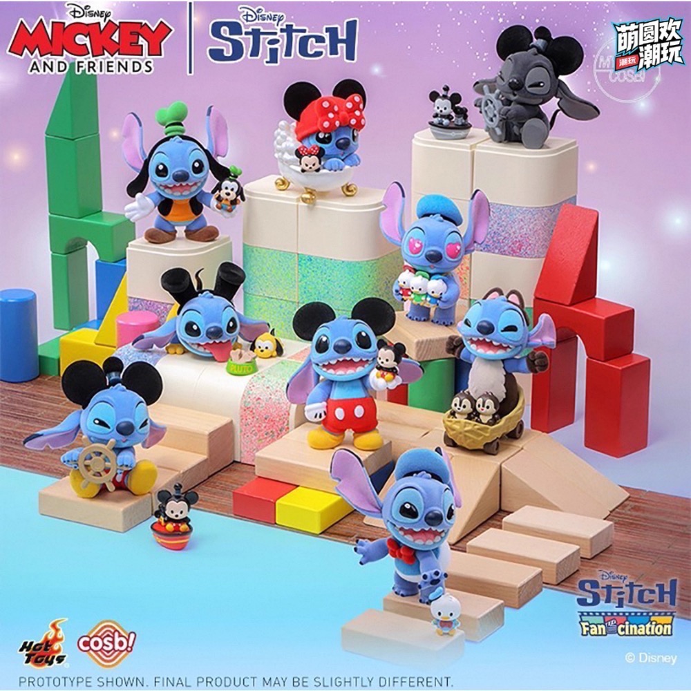 《史迪奇狂热系列》米奇与好友|史迪奇COSBI盲盒迷你人偶>外星小狗626闯入魔法衣橱化身米奇好友的一员。