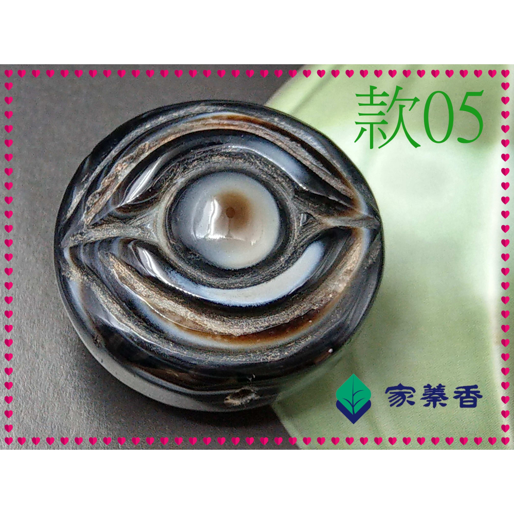 【家蓁香】精品老件 天然西藏九頁岩老礦 羊眼雕刻佛眼珠&太極33.2*21mm天眼石 天珠 單珠 (E-05)