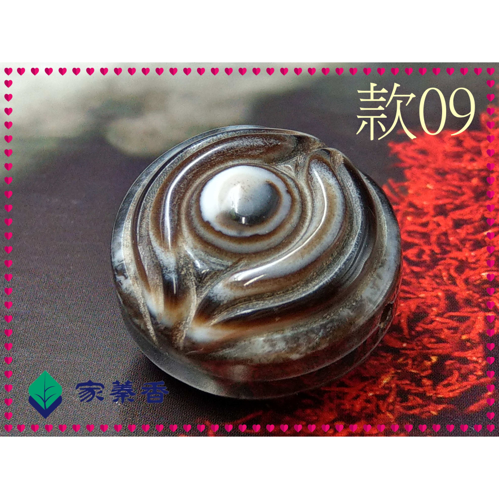 圓板天珠在各式各樣的天珠中,流傳的範圍最廣,發展的時間最長,西藏人稱為魯密,印度人稱為眼珠,有立體形及扁圓形兩種,能幫助配戴者【功成名就】【事業有成】【財源不絕】。