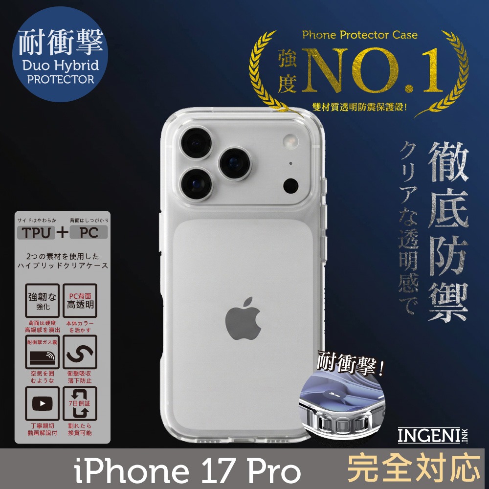 iPhone 17 pro 手機殼 TPU+PC雙材質透明手機殼 防摔殼四角氣囊防摔 INGENI徹底防禦