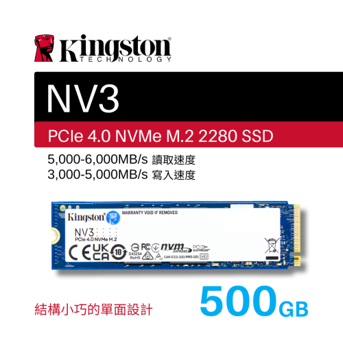 金士頓 Kingston NV3 500GB PCIe 4.0 NVMe 單面 M.2 2280 SSD