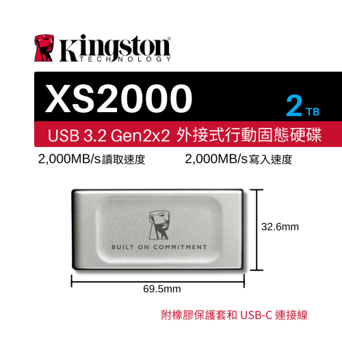 金士頓 XS2000系列 2TB USB3.2 Gen2x2 外接式固態硬碟 SSD 口袋大小