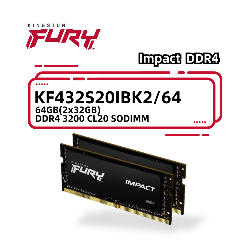 金士頓Fury Impact DDR4 3200 64GB(32GBx2) 筆記型 電競 KF432S20IBK2/64