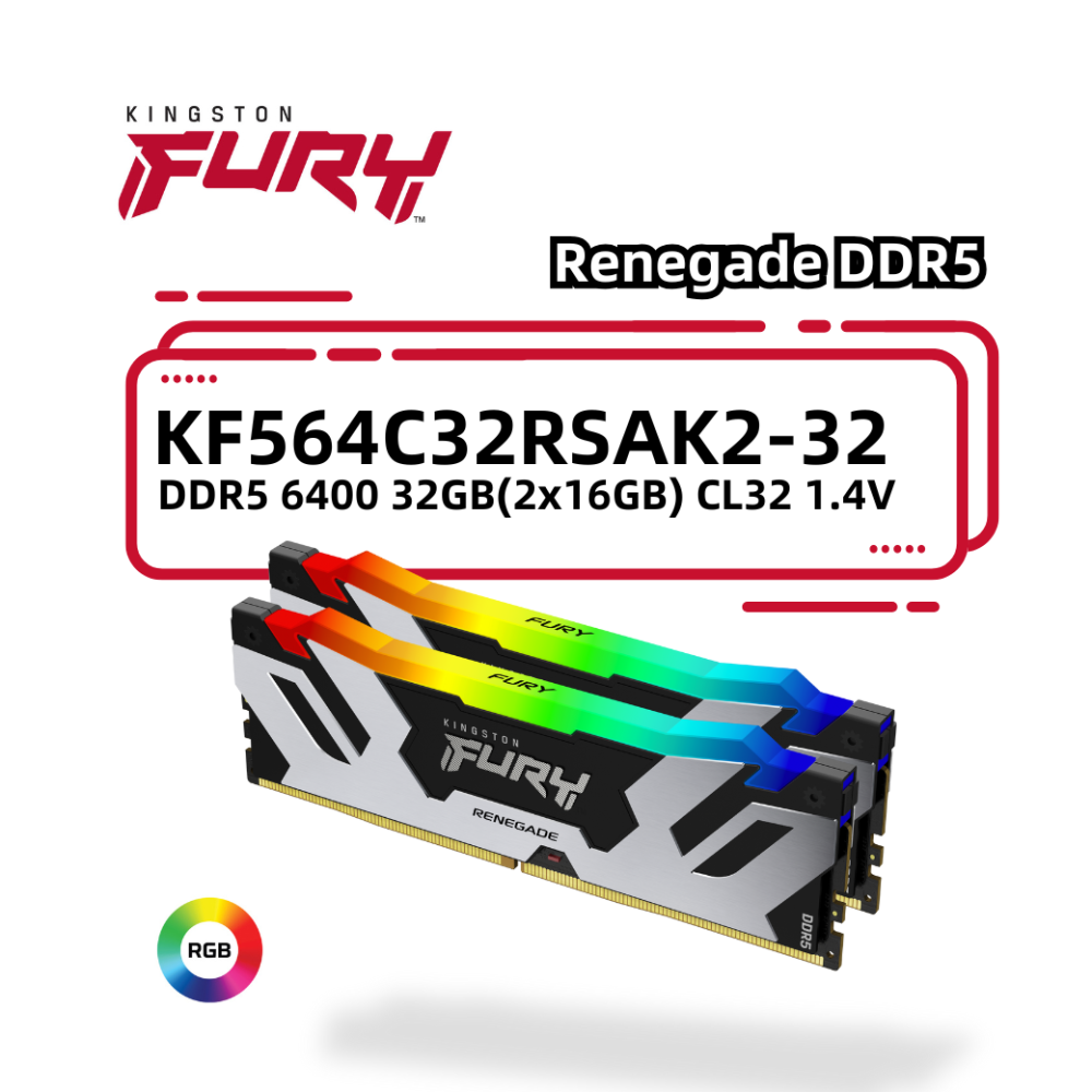 金士頓 FURY Renegade RGB 32GB(16GBx2) DDR5 6400 CL32 桌上型 電競記憶體