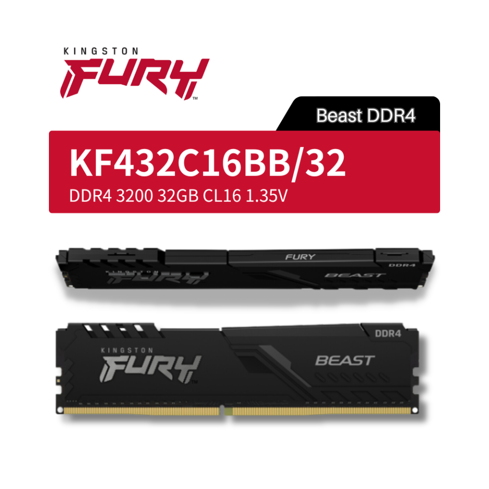 金士頓 FURY Beast DDR4 3200 32GB(單支) 桌上型 電競記憶體 KF432C16BB/32