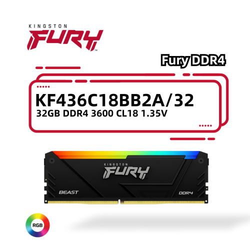 32GB (1x32GB) DDR4 3600MT/s CL18 FURY Beast RGB Black XMP