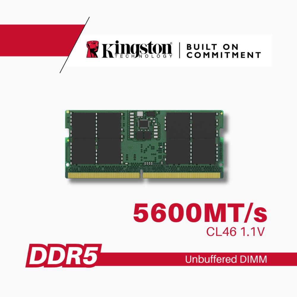 8GB DDR5 5600MT/s Non-ECC Unbuffered SODIMM CL46 1RX16 1.1V