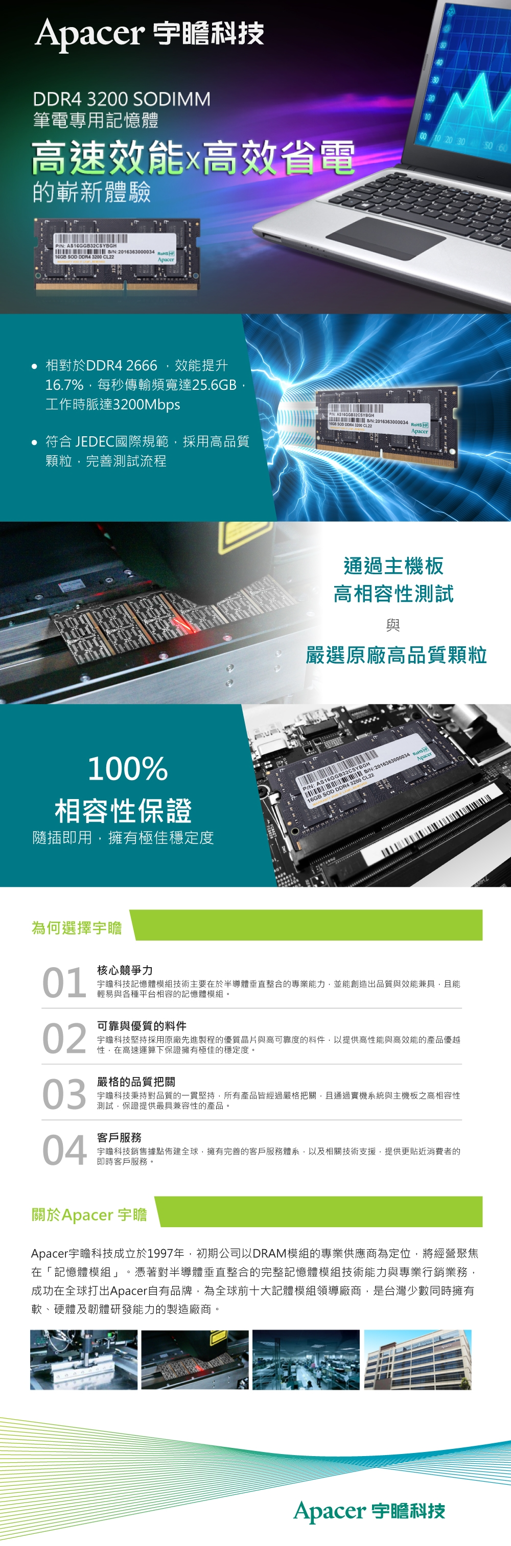 Apacer 宇瞻 16GB 32GB DDR4 3200 CL22 1.2V 筆記型記憶體